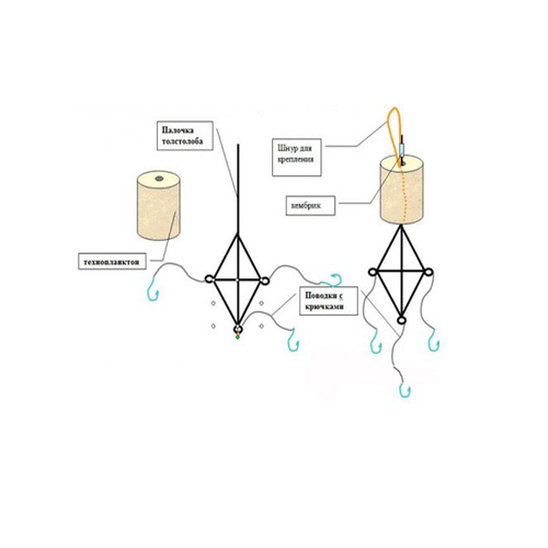 Հարմարանքի երկար մասը անցնում է տեխնոպլանկտոնի մեջով, կողքերից ամրացվում են կեռիկները իրենց միացումներով